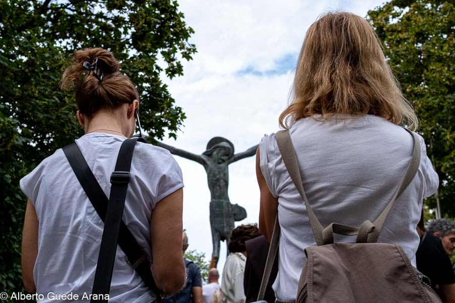 Y tras esta estación en nuestro recorrido, arrancamos hacia el lugar original de las apariciones. Y sorpresa, eran un par de kilómetros de paseo y nada fáciles. Bueno, en nuestro caso algo más porque nos perdimos, y cuando por fin nos localizamos, vimos en el horizonte que el último tramo era de gran desnivel y al sol. Al llegar además descubriríamos que el suelo era de piedras en muy mal estado. Esto provocó que alguno de los compañeros se ahorraran el paseo y se quedasen por el pueblo.