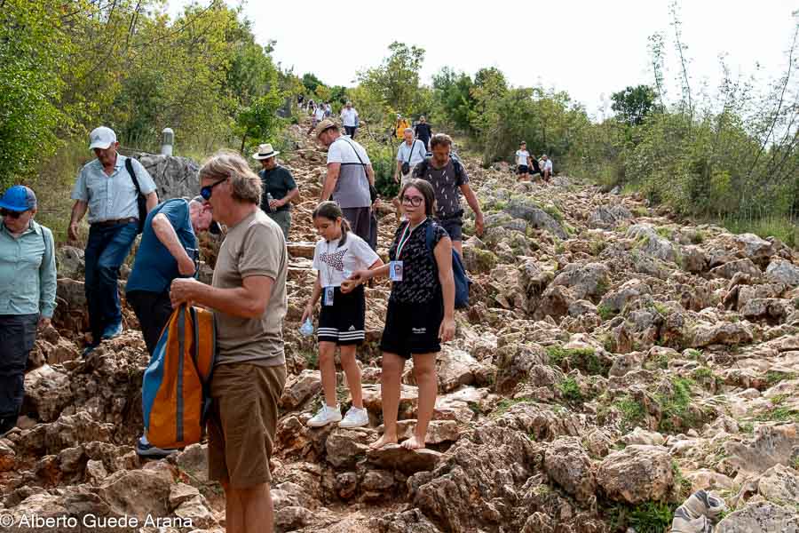 En esta ascensión pudimos ver y comprobar el fervor de los creyentes. En esta ruta había gente «escalando» en muletas, peregrinos haciendo el camino descalzos, y múltiples situaciones sorprendentes al ojo del no creyente. Por cierto que durante este tramo de ascenso había varios puntos de rezo en los que los peregrinos realizaban sus paradas a orar… o descansar.