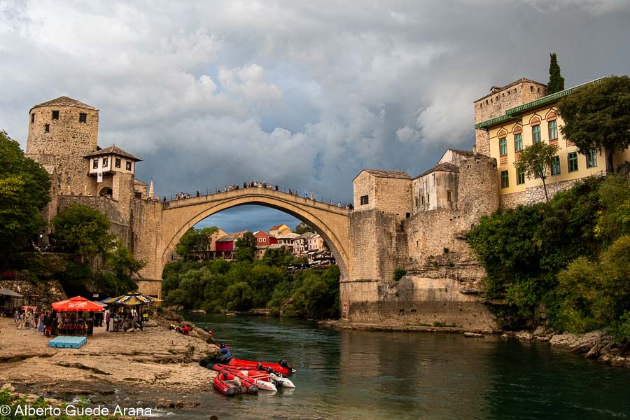 Por fin llegamos a Mostar. La parada más esperada por varios de los compañeros. A fin de cuentas, hay tanta historia alrededor de su puente, y su casco histórico es tan atractivo, que es lógico que así fuera. En mi caso no lo es, me parece todo tan organizado para turistas, me me produce algo de rechazo. Reconozco que atendiendo exclusivamente a lo estético, es un lugar precioso, pero un puntito artificial. Al menos hasta que te escapas del entorno del puente y empiezas a ver la realidad de los que allí viven.