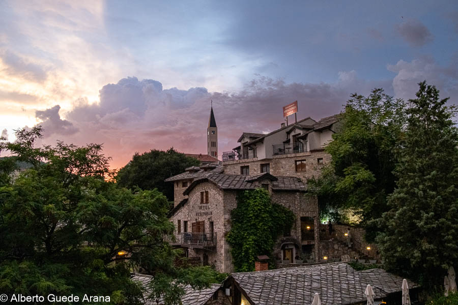 Llegamos para cenar y con dos sorpresas. La primera, que parte de nosotros teníamos nuestras habitaciones en otro edificio del hotel ubicado al otro extremo del «oldtown». La segunda y más ¿divertida? fue que el restaurante decidió amenizarnos la cena con música española. ¿Te imaginas que alguien de bosnia viniera a España y le pusiéramos su música folclórica? Pues esto es lo que nos hicieron a nosotros. Eso si, al menos alguno de los temas a mi me gustaba como este de la gran Buika: «no habrá nadie en el mundo». Así que lo incluimos en nuestra banda sonora de este viaje fotográfico a Bosnia.