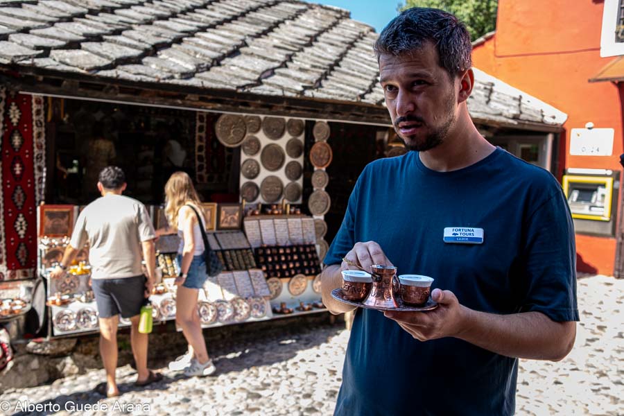 A la mañana siguiente y tras un desayuno temprano, acudimos a realizar una visita guiada por la ciudad. Así pudimos escuchar la historia de Mostar y poner contexto a lo que la noche anterior habíamos visto. Una ruta muy interesante donde además de escuchar lo que nos contaba el guía, también escuchamos lo que no decía. Transmitía en sus palabras y ejemplos que aun existe una situación de tensión en la que sigue habiendo bandos muy definidos y enfrentados. La guerra no terminó, tan solo está pausada.