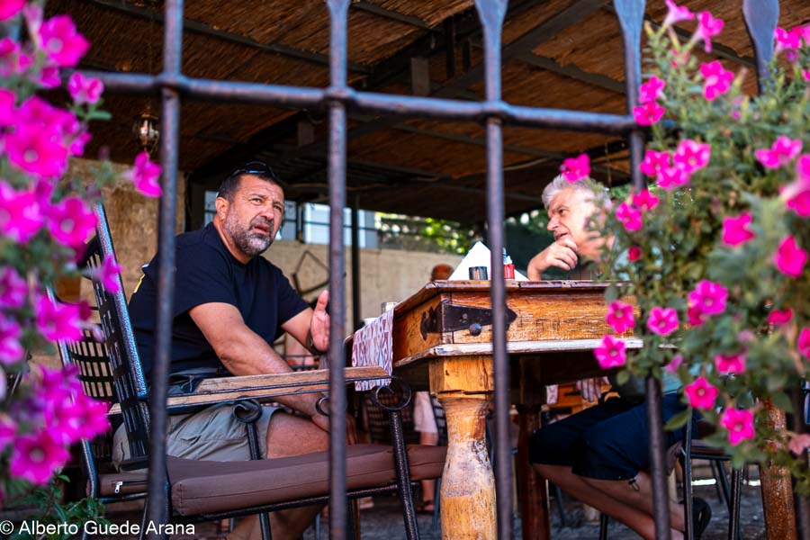 ¿Alguna anécdota de este rato? Varias. La primera fue que nos encontramos a la misma chica turca de la víspera, y esta vez se pegó a nosotros hasta que nos marchamos. La segunda fue que Sergio nos retrató a todos junto al «precipicio» y alguno de los compañeros era algo aprensivo y temeroso de que nos cayéramos. Y la tercera fue que los dueños del bar nos hicieron pedir consumición para conservar el espacio que habíamos ocupado, pero nunca las trajeron y por supuesto tampoco habíamos pagado. En esta ocasión agradecimos el mal servicio.