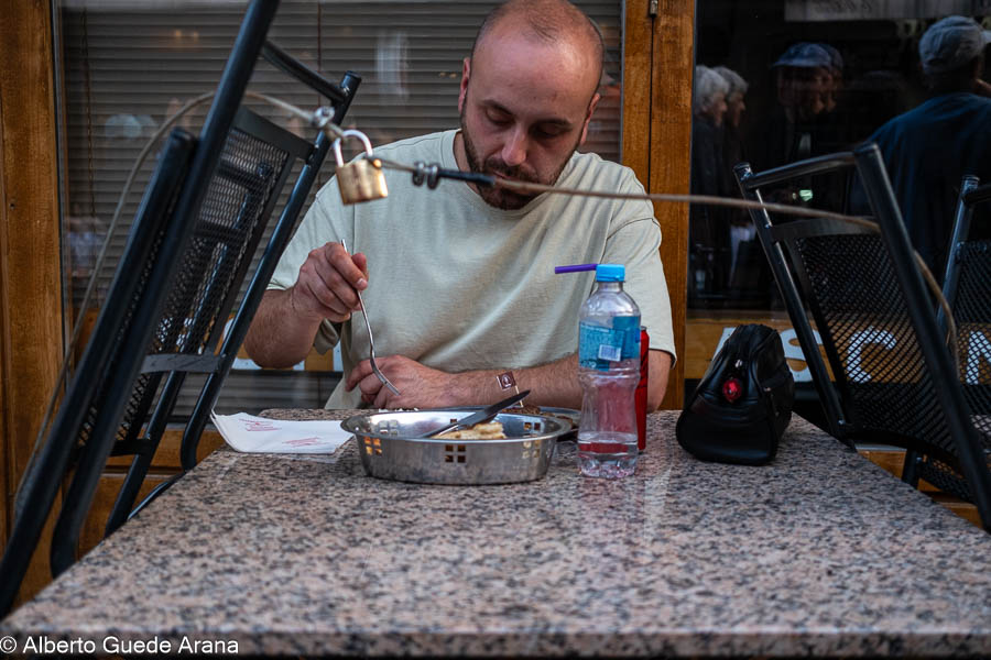 La última parada antes de ir a cenar fue paramos en el «fuego eterno». Un recordatorio a las víctimas de la II Guerra Mundial. Aquí arrancó otra bonita historia de nuestro viaje. En pleno debate con Rober sobre dos fotos análogas y cuál era buena y cuál no funcionaba, conocimos a una joven turista que venía de Turquía. Se acercó a nosotros al ver a un grupo grande de gente con cámaras y estuvimos charlando un buen rato con ella. Por cierto que no se que votó al final ni qué foto ganó. Daba igual.