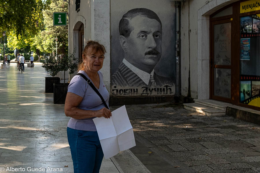 Apareció ataviado con banderas de España tanto en camiseta como en pulsera. Pero no solo eso, sacó una bandera que no dudó en ondear. Y como guía… vaya guía. Conocimiento cero absoluto sobre lo que debería ser su función, y lo que aun fue peor, desconocimiento absoluto sobre la historia de su ciudad. Lo más brillante fue su respuesta a la pregunta sobre el primer rey de Bosnia cuya estatua estábamos viendo. Le interpelamos sobre contra quién luchó para ser rey, y su respuesta la llevaremos grabada a fuego: «contra todos». Y se quedó tan ancho.
